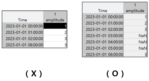 * 진폭 입력값은 결측 구간이 존재할 시, 생략하지 말고 nan으로 입력해야 합니다.